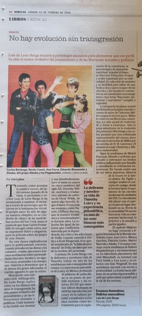 Luis de León Barga, en Excesos femeninos. Delirios masculinos, rescata a diversas personalidades avanzadas a su tiempo para demostrar que esa actitud ha sido motor evolutivo del pensamiento y las libertades sexuales.