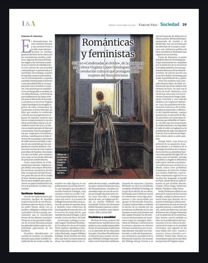 El libro Condenadas al olvido, de la profesora y escritora Virginia López Domínguez, analiza la revolución cultural que protagonizaron mujeres del Romanticismo.